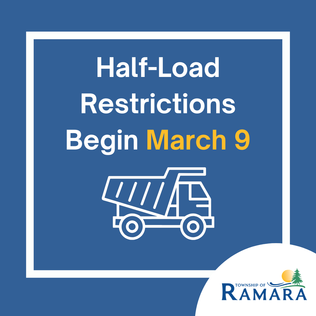 The Township of Ramara is advising residents, businesses, and commercial operators that half load restrictions will come into effect on Monday, March 9. These seasonal weight restrictions are implemented each year to protect our roads during the spring thaw, when they are most vulnerable to damage.